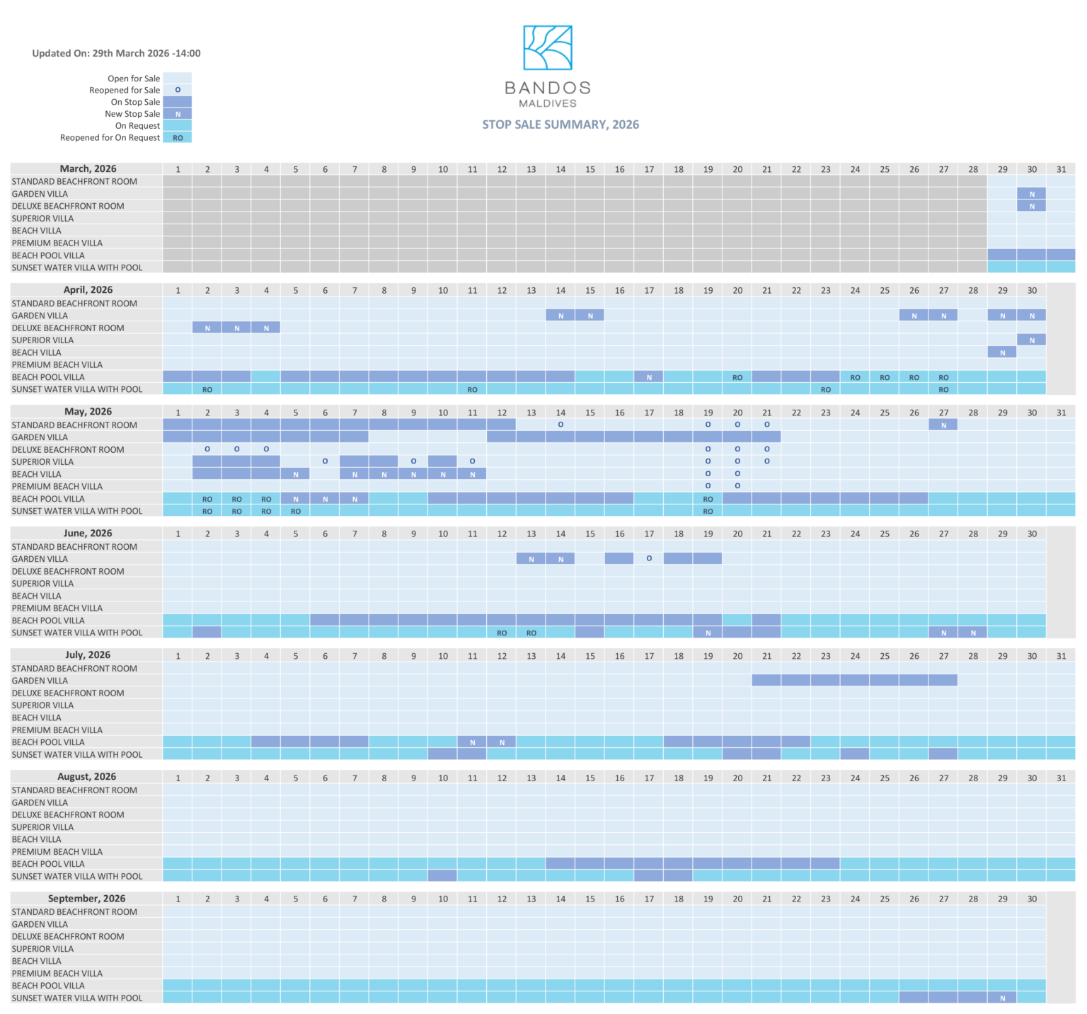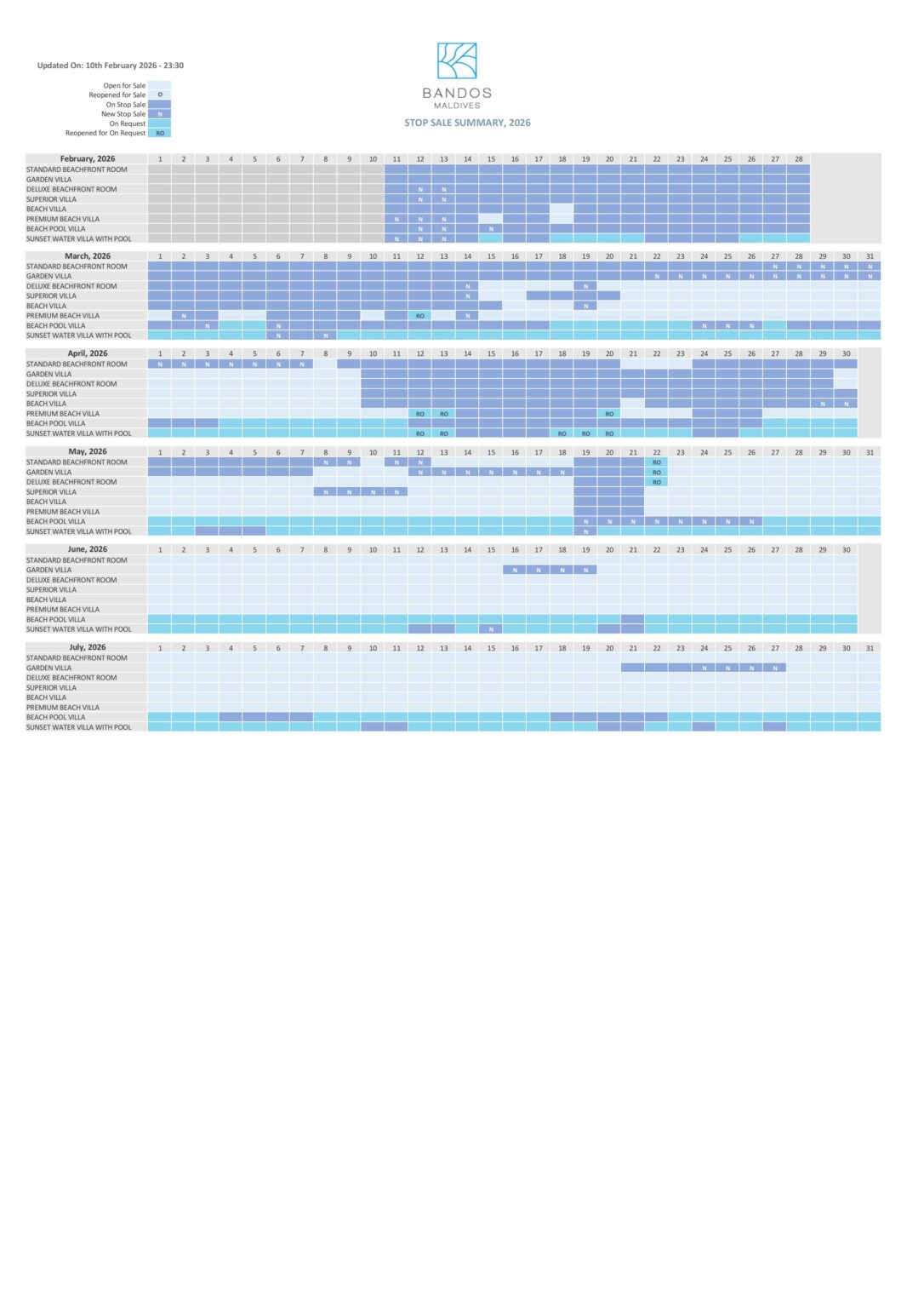 Availability & Stop Sale Calendar